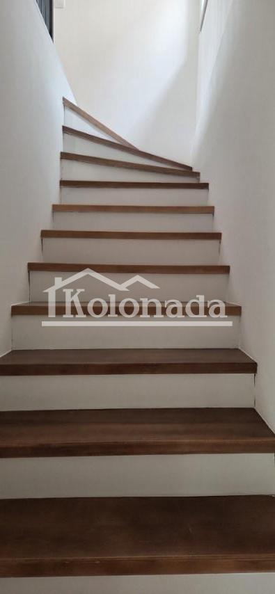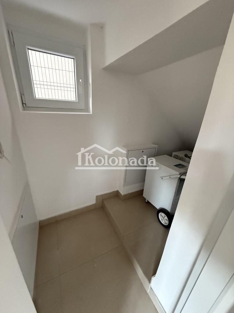 Prizemlje ima hodnik, toalet, ostavu, kuhinju sa trpezarijom i dnevnim boravkom sa izlazom na prostran trem površine 30m2. Prizemlje i sprat su povezani unutrašnjom vezom.